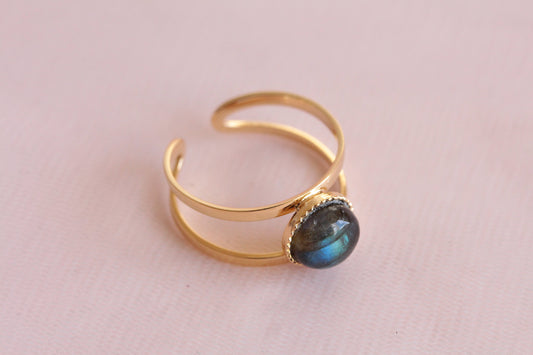 Bague acier inoxydable avec labradorite naturelle ajustable cinq anneaux martelés