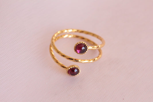 Bague avec grenat naturelle ajustable spirale torsadée dorée à l'or fin