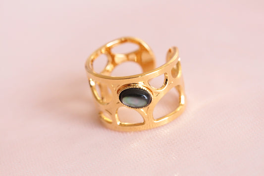 Bague nacre grise ajourée dorée à l'or fin 24 carats Lorie