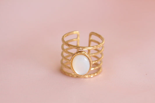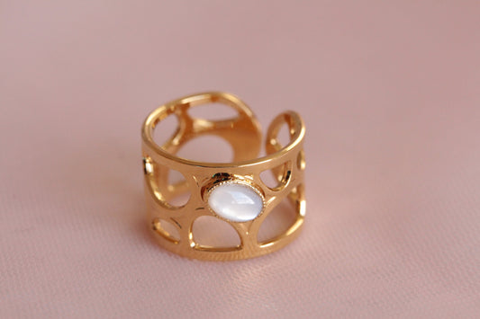 Bague nacre ajourée dorée à l'or fin 24 carats Lorie