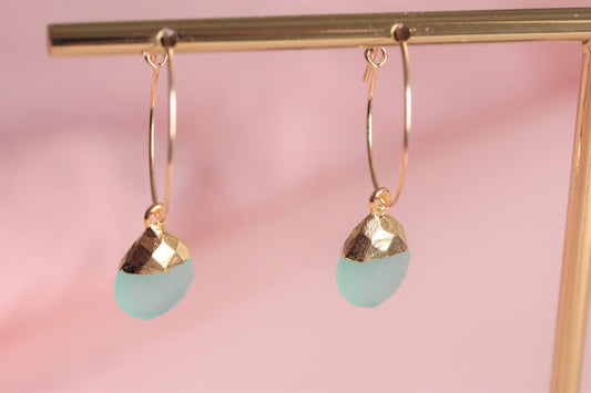 Mini créoles plaquées or avec gouttes en calcédoine