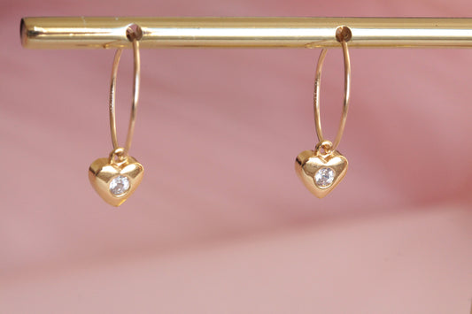 Mini créoles plaquées or avec pendentif cœur doré à l'or fin