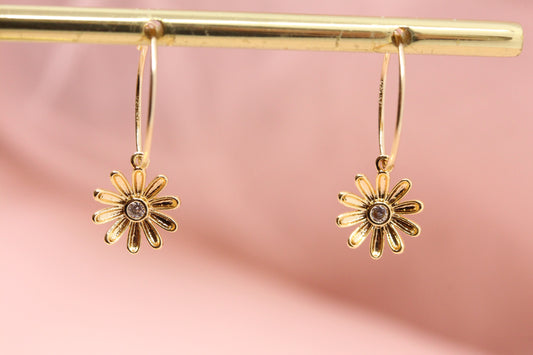 Créoles boucles d'oreilles fleur marguerite plaquées or