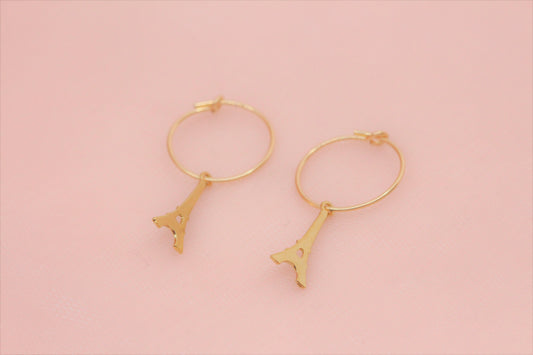 Créoles Boucles d'oreilles tour Eiffel de Paris plaquées or