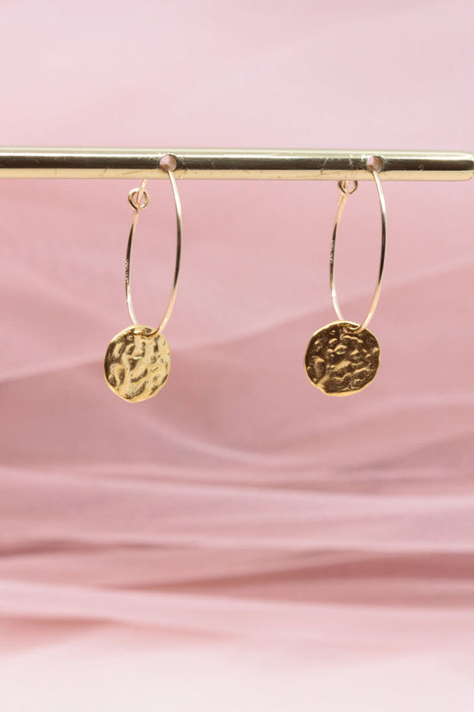 Petites créoles acier inoxydable pendentif rond martelé